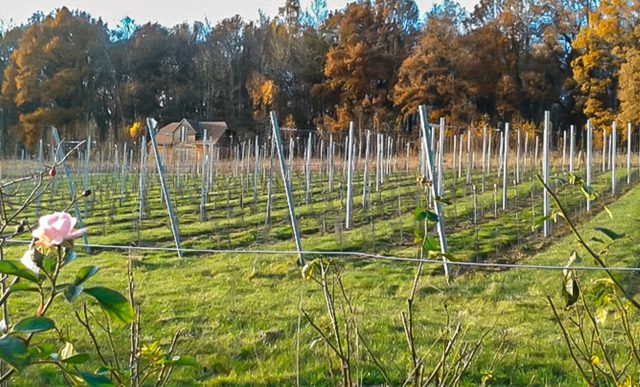 Planté en 2021 avec environ 1200 pieds, le domaine privilégie une approche respectueuse de la nature et de la biodiversité, avec des cépages résistants adaptés au climat local.